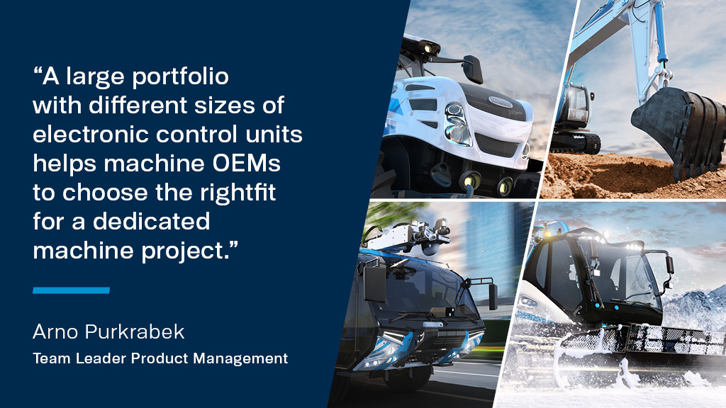 Ensuring component versatility is one way to counter the challenges of cost-efficient and innovative future off-highway vehicle design. In relation to the example of Electronic Control Units, this means having a selection of different sizes and types at hand is an advantage when starting a new machinery project. In combination with a high configuration ability of the components this helps to significantly increase development flexibility and reduce production time. Machinery manufacturers reduce their overall development effort and benefit from easier and faster implementation of new functions.