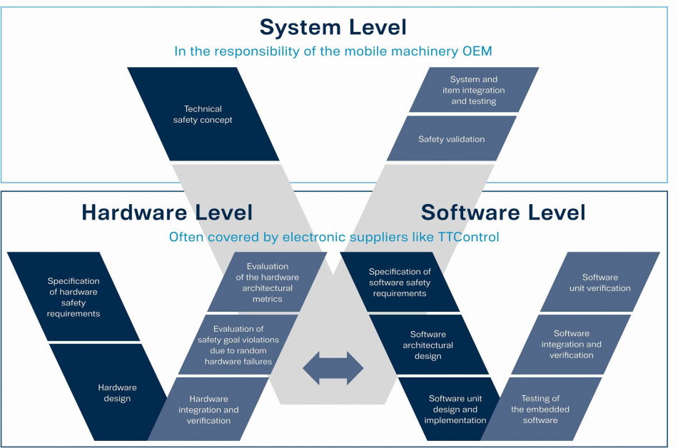 During the last few decades, mobile machinery has become increasingly more efficient, more convenient to operate and especially also safer. This evolution goes hand in hand with a constant update of regulations and standards. Manufacturers of off-highway vehicles are faced with the challenge of complying with all regulations, such as ISO 26262:2018. In the article, TTControl discusses ISO 26262:2018 and demonstrates its application using the high-end controller TTC 580 as an example.